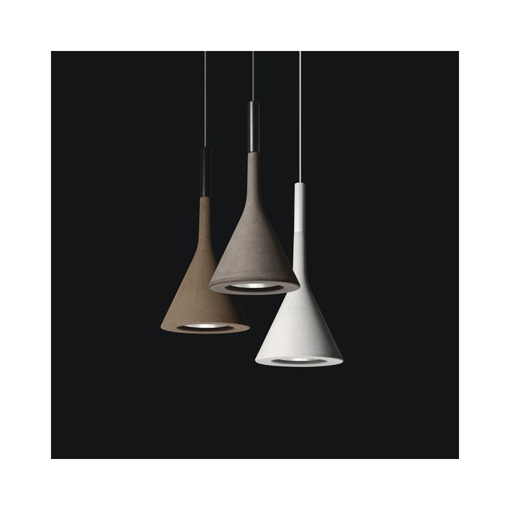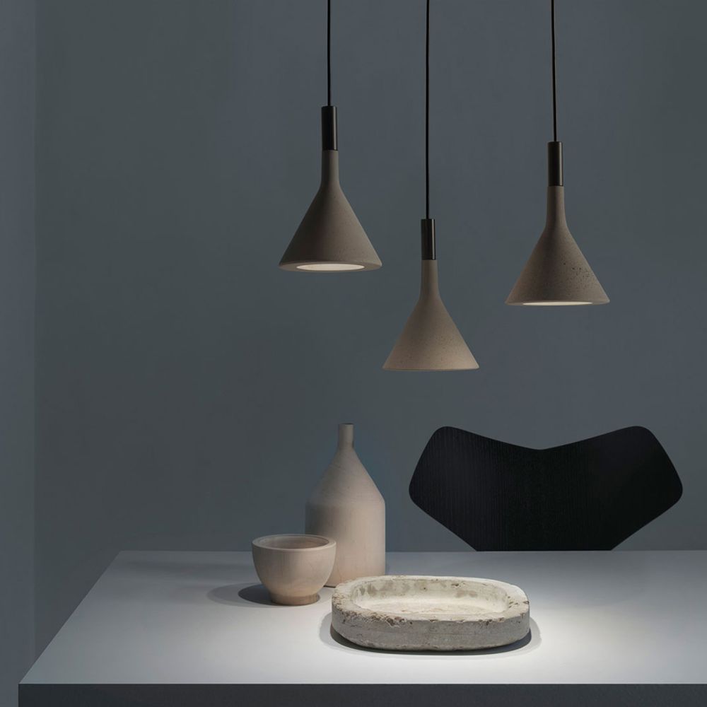 FOSCARINI APLOMB è una piccola SOSPENSIONE realizzata in cemento e proposta in tre finiture cromatiche: APLOMB GRIGIO, il classico colore del cemento grezzo, che conferisce profondità ai volumi; APLOMB BIANCO, colorazione elegante e pura; APLOMB MARRONE un colore caldo e intenso.