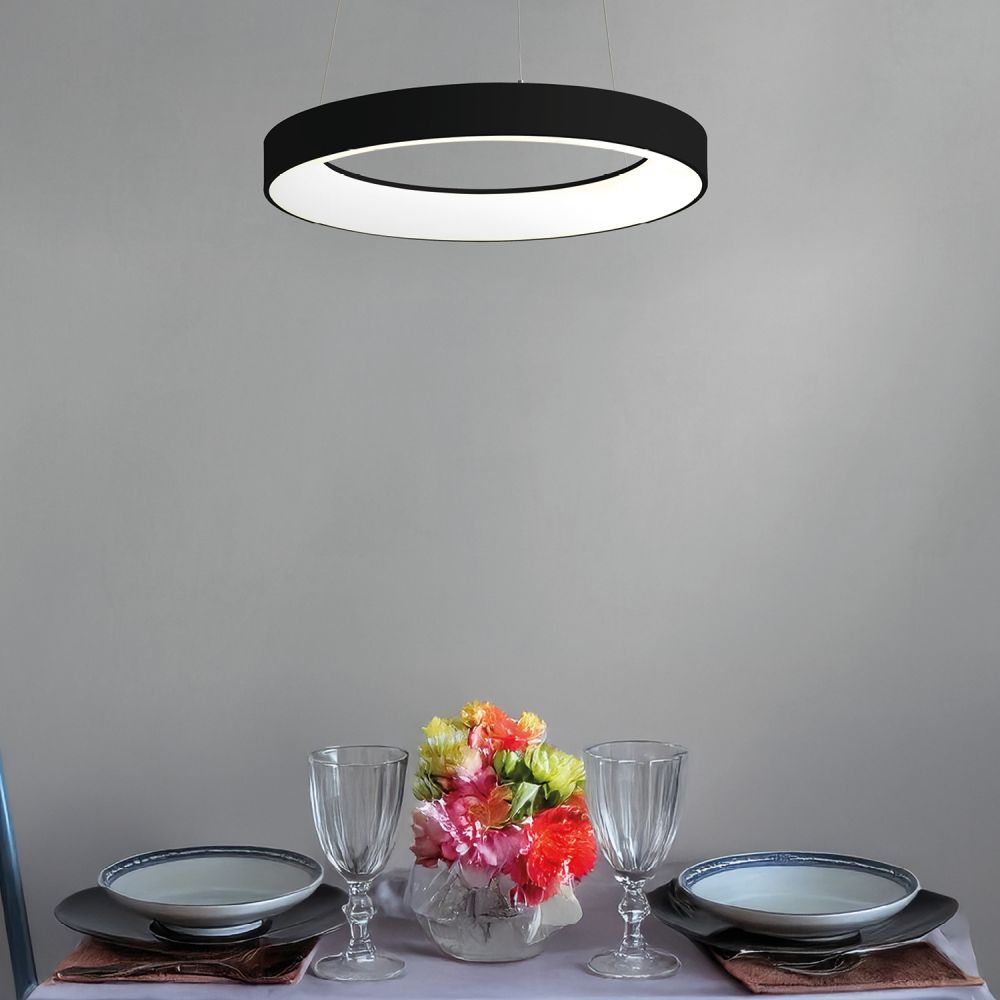 La sospensione Inner-R 60 cm è caratterizzata da un design circolare elegante e leggero. Grazie ai LED integrati da 50W con resa luminosa di 3000–3200 lumen, illumina in modo uniforme e diffuso.