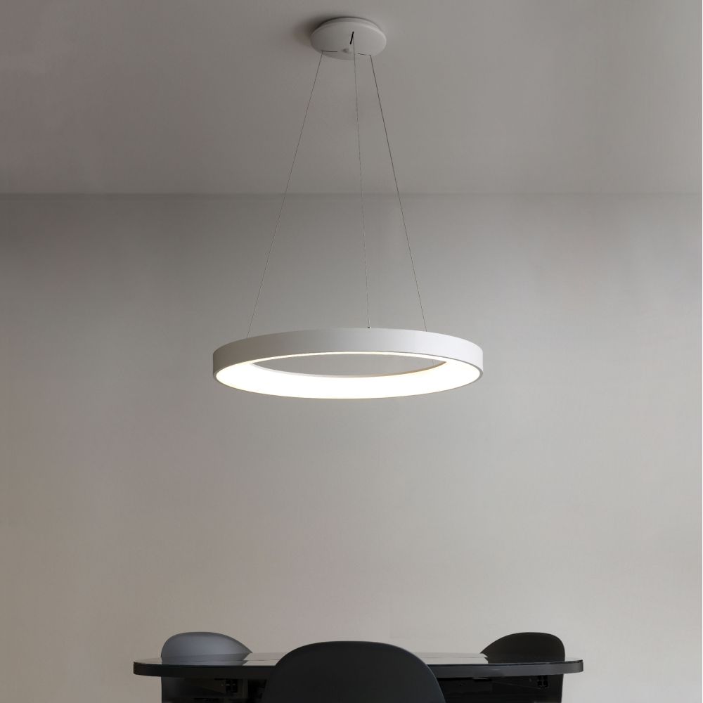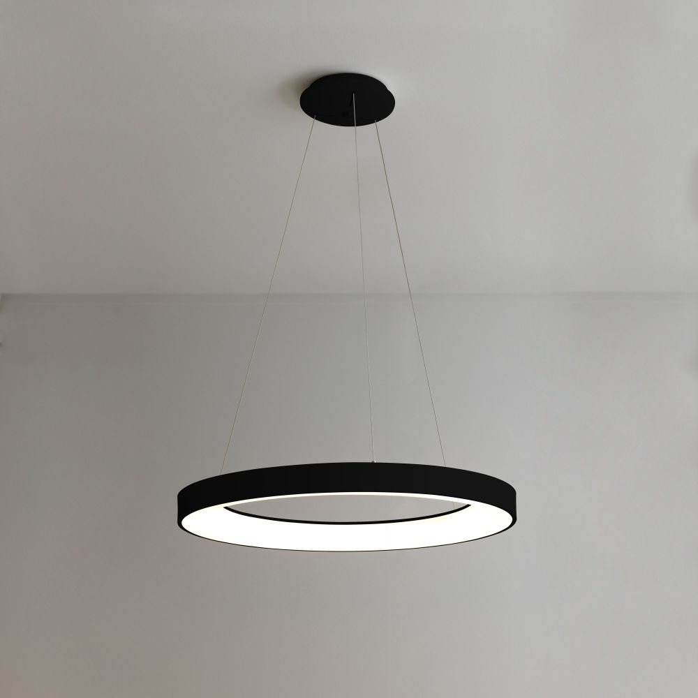 Sospensione anello LED diffusa con luminosità uniforme e tonalità 3000/4000K regolabile, design elegante adatto a spazi moderni.