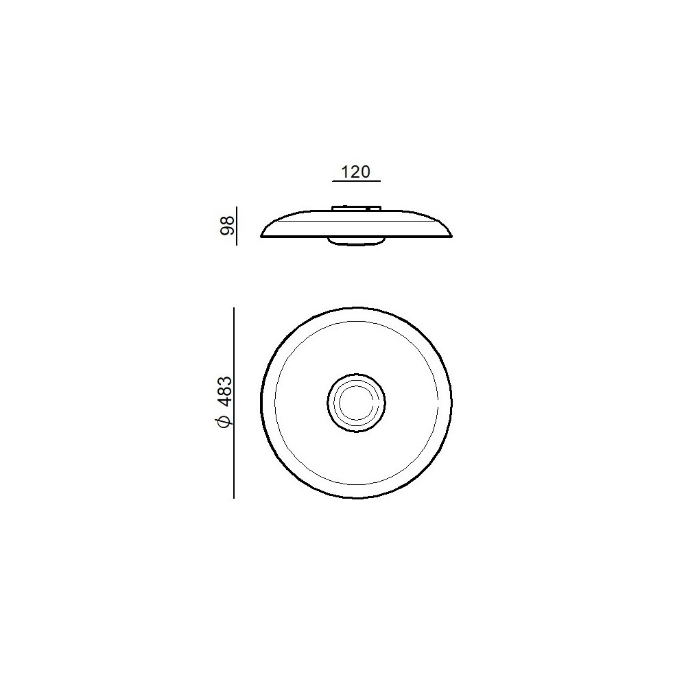 Plafoniera da interno Ø 48 cm con sorgente LED integrata, potenza 25W, 2700/3000K, CRI 90 e luce indiretta e diffusa verso il basso. Flusso luminoso reale fino a 2215 lm, diffusore opalino per un’emissione uniforme e confortevole. Corpo in alluminio verniciato, disponibile in diverse finiture. Dimmerabile.