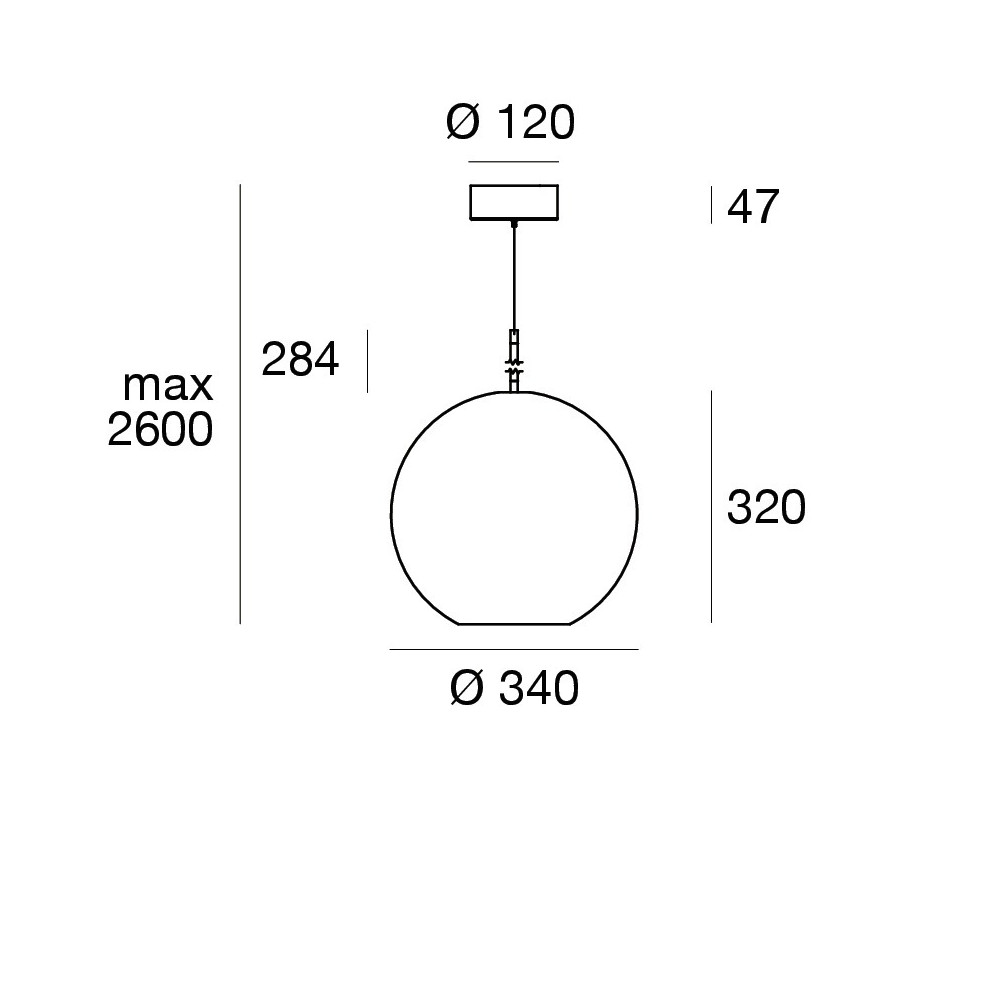 Lampada a sospensione con diffusore in vetro d. 34 cm, montatura in alluminio, disponibili nei colori bianco, nero, peach, petrol e deep blue. LED 19W fino a 1969 lumen, CRI 90, 2700K o 3000K, dimmerabile.