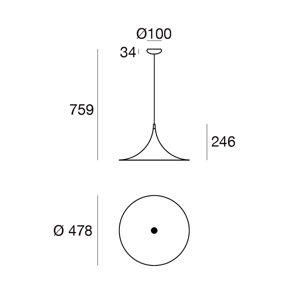 Le diverse finiture colore disponibili permettono di adattarla sia a palette neutre ed eleganti, sia a interni più caratterizzati, creando continuità o contrasto con arredi, pareti e materiali. Il cavo di sospensione regolabile consente infine di modulare l’altezza in base alle proporzioni dello spazio e all’effetto desiderato.