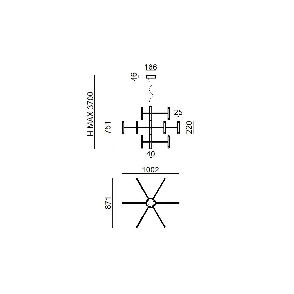 Perla P12 interpreta il concetto di chandelier in chiave contemporanea, combinando una geometria ampia (Ø 100 cm) con un’altezza contenuta (75 cm), ideale per ambienti in cui è necessario un forte impatto visivo senza appesantire il volume. La composizione a 12 luci crea un disegno luminoso equilibrato e dinamico, perfetto come elemento centrale dello spazio.