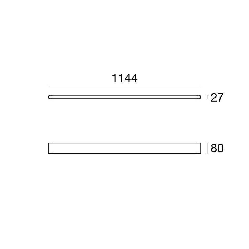Plafoniera lineare 114 cm realizzata in metallo con luce diretta. Ottica retrocessa per ridurre al minimo l'abbagliamento. LED 44W fino a 3590 lumen reali. CCT 2700K/3000K. Dimmerabile Dali/Push.