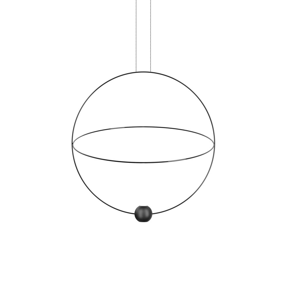 Lodes Elara Sospensione Large 80 cm, lampada a sospensione composta da due anelli in metallo ed un corpo illuminante inserito sull'estremità inferiore del carchio. LED 32W disponibile a luce calda 2700K o 3000K. Prodotto disponibile nelle finiture Nero e Oro.