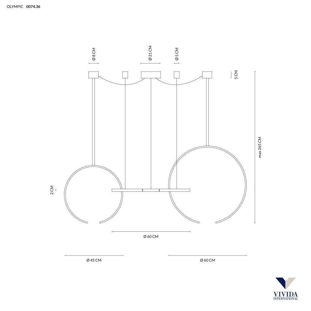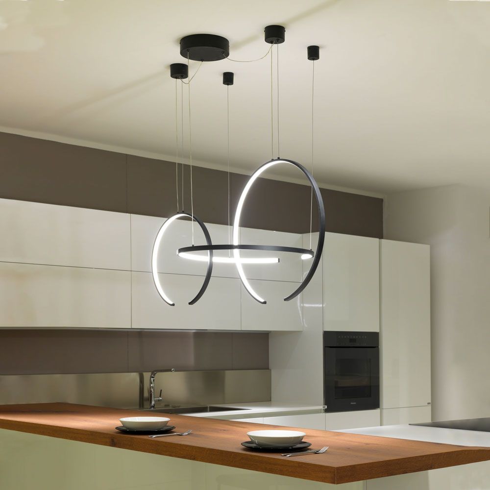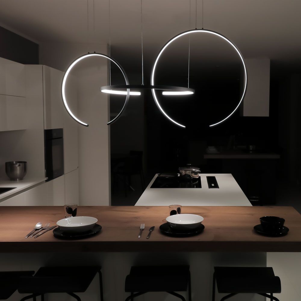 La spettacolare sospensione Olympic 3 Anelli è una lampada di forte impatto visivo, composta da tre anelli LED sospesi ed intersecati che creano un gioco di forme e luci.