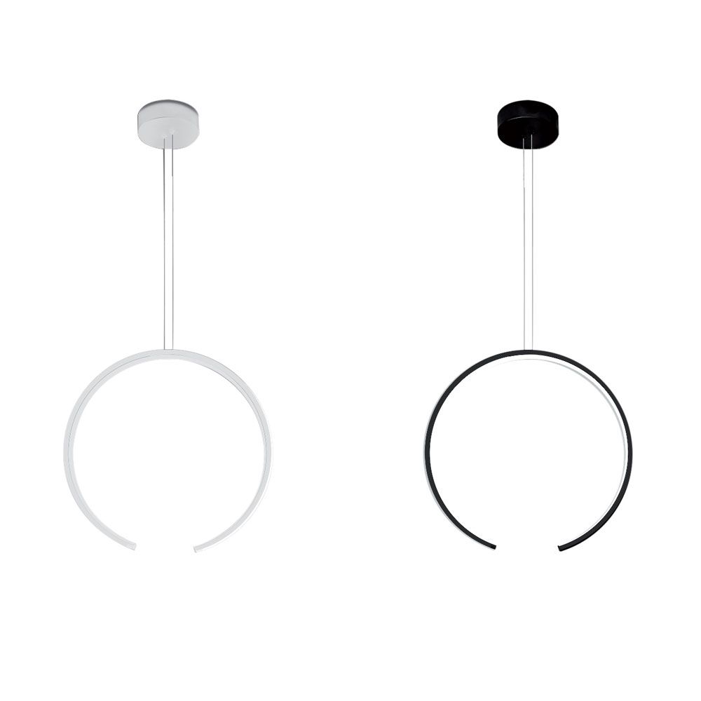 Lampada a sospensione LED dal design moderno, forma ad anello e luce diffusa regolabile tra 3000K e 4000K. Ideale per ambienti contemporanei di piccole dimensioni.