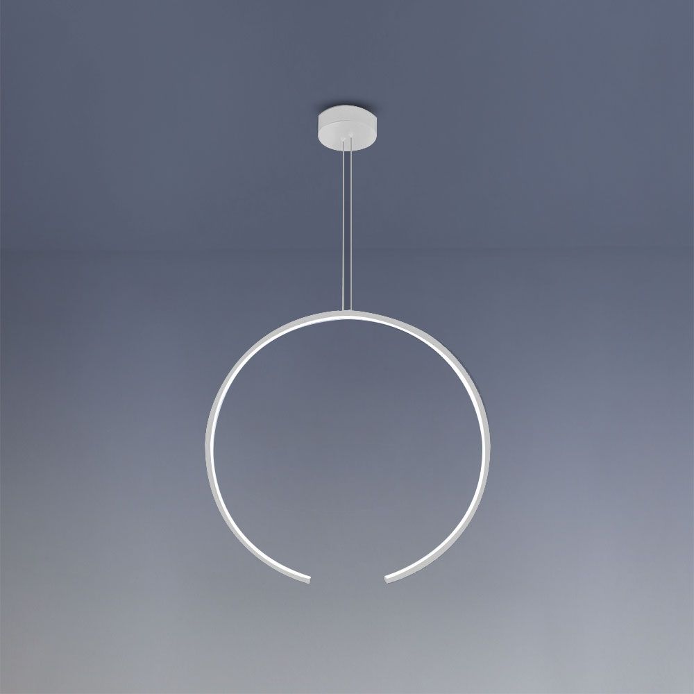 Sospensione LED elegante con struttura in acciaio, diametro 60 cm e colore luce selezionabile 3000/4000K. Perfetta per living e zone dining. LED 24W 1090 - 1140 Lumen. Disponibile nei colori bianco e nero.