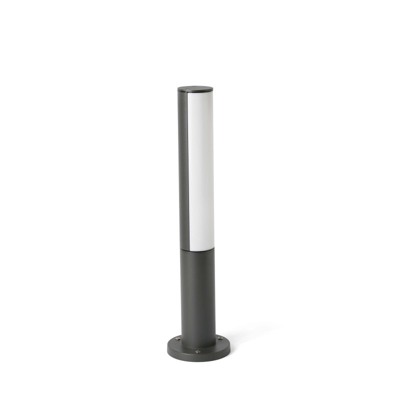 Lampioncino cilindrico per esterni LED alto 50 cm in alluminio grigio, ideale per illuminazione di camminamenti e passaggi in aree esterne.