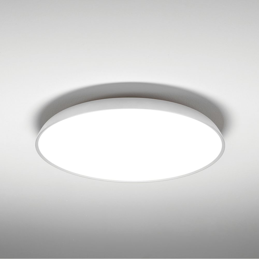 Realizzata in metallo e policarbonato, misura 60 cm di diametro e 8 cm di sporgenza. È dimmerabile, con grado di protezione IP20. Perfetta per salotti, open space e spazi contract. Disponibile in bianco, bronzo, sabbia, titanio, nero.
