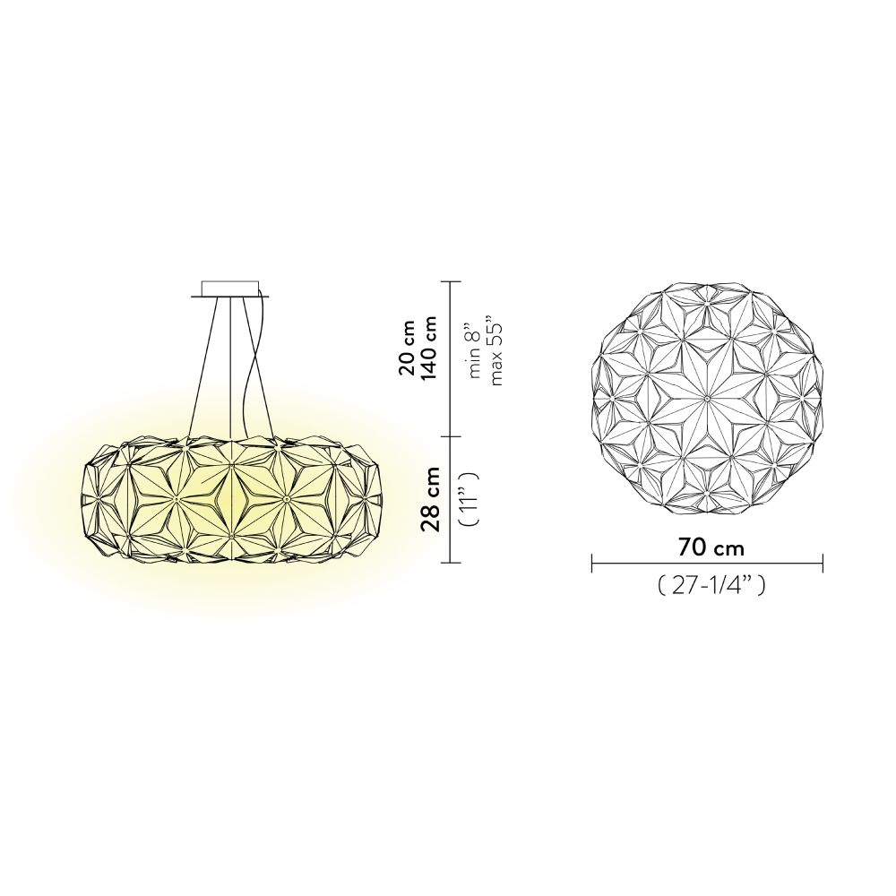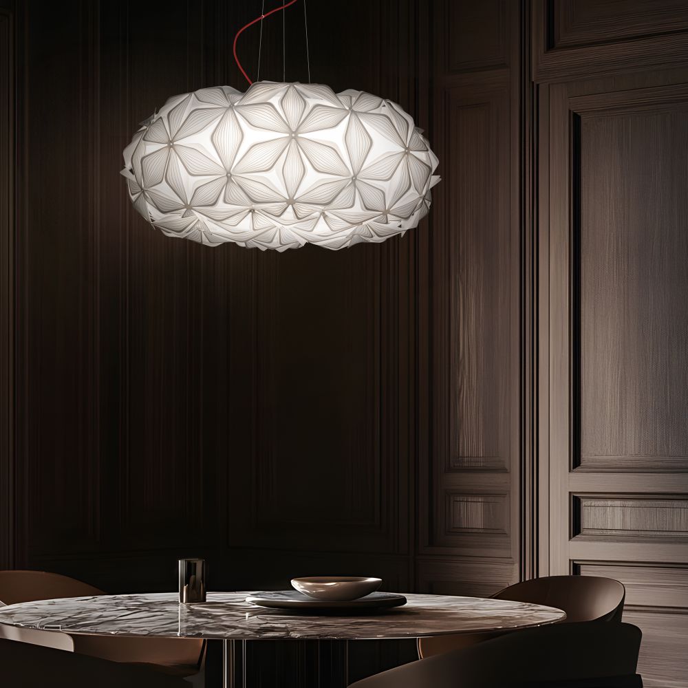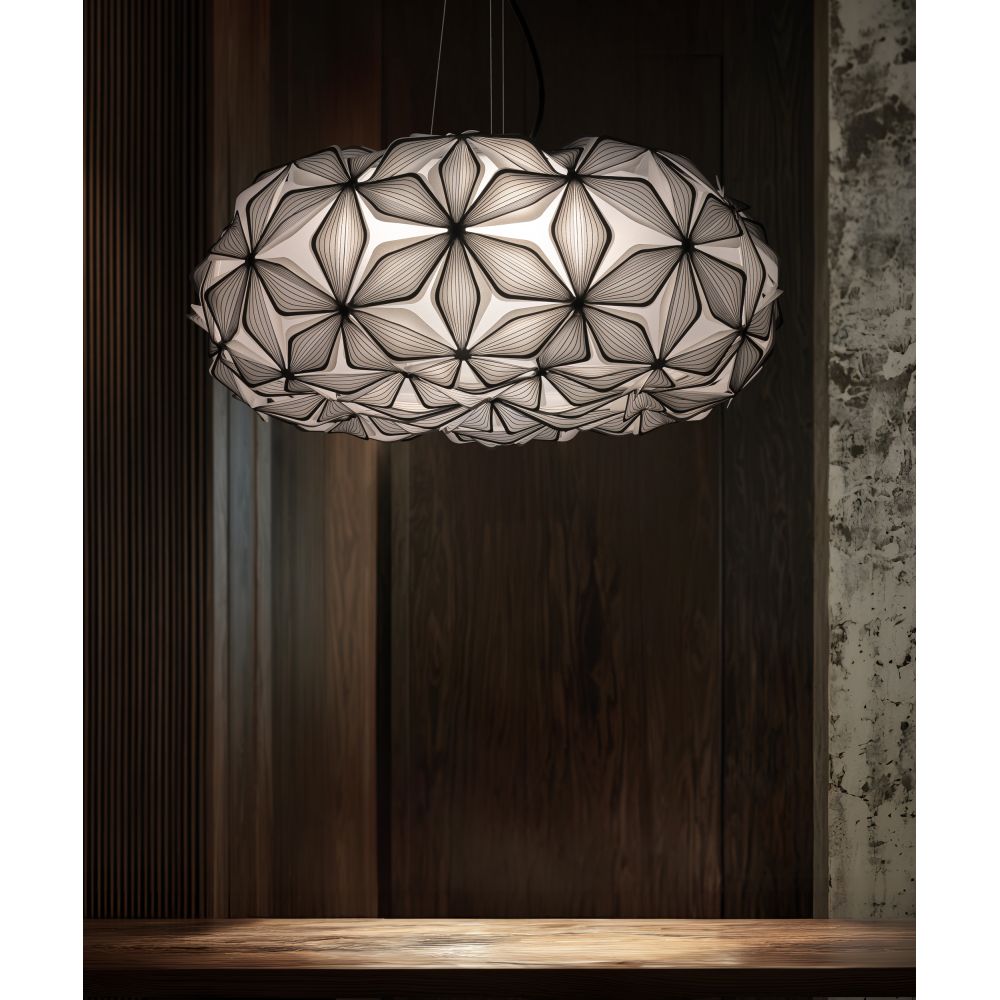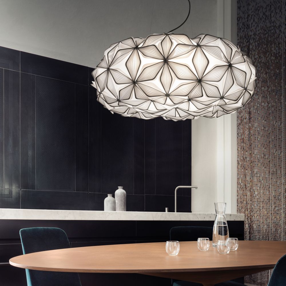 La sospensione C’est La Vie Large Ø 70 cm di Slamp, design Adriano Rachele, rappresenta l’equilibrio perfetto tra presenza scenica e leggerezza visiva. La sua forma tridimensionale, ispirata a un fiore stilizzato, trasforma la luce in un elemento decorativo raffinato, capace di arricchire lo spazio senza appesantirlo.