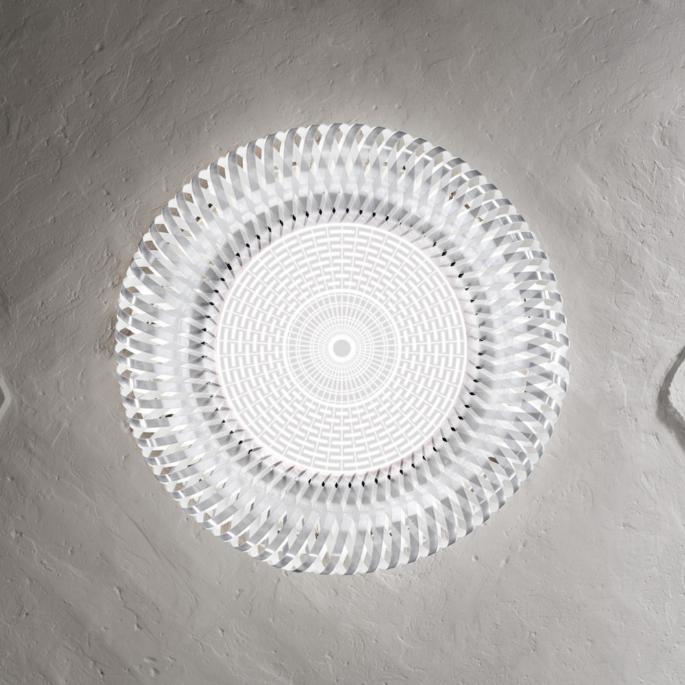 Plafoniera circolare d. 63 cm realizzata in lentiflex disponibile in colore bianco o nero.