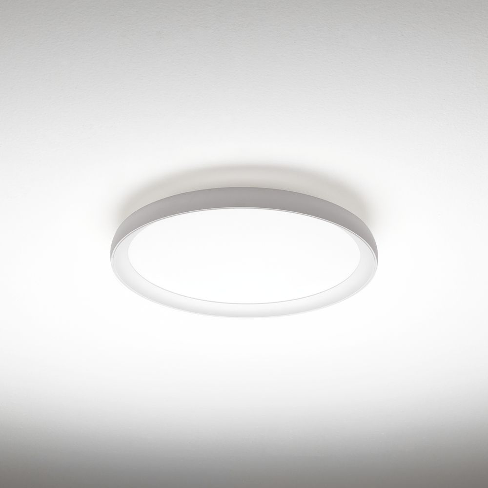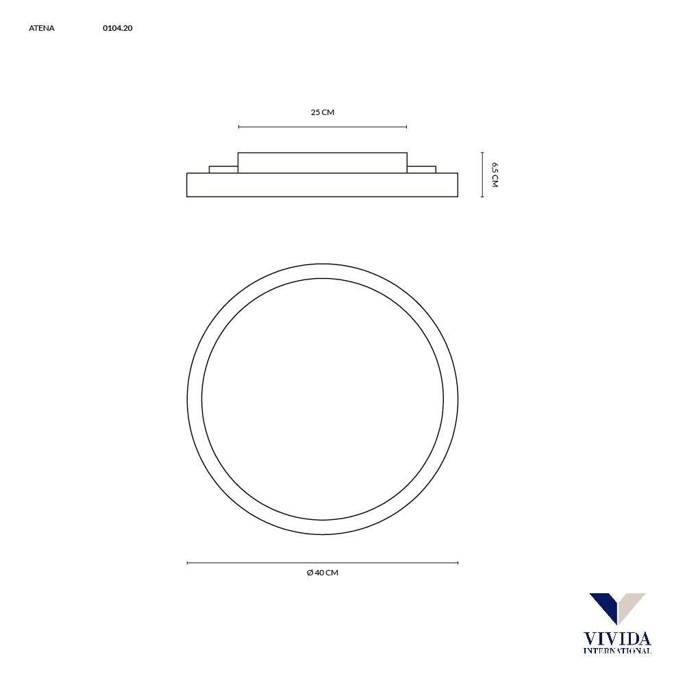 Plafoniera LED Vivida Atena 40 cm – 36W, 2115-2350 lumen. Design moderno, ultrasottile (6,5 cm), luce diffusa e uniforme. Colore luce selezionabile con switch interno tra 3000K/4000K. Ideale per camere, ingressi e cucine. Garanzia 2 anni.