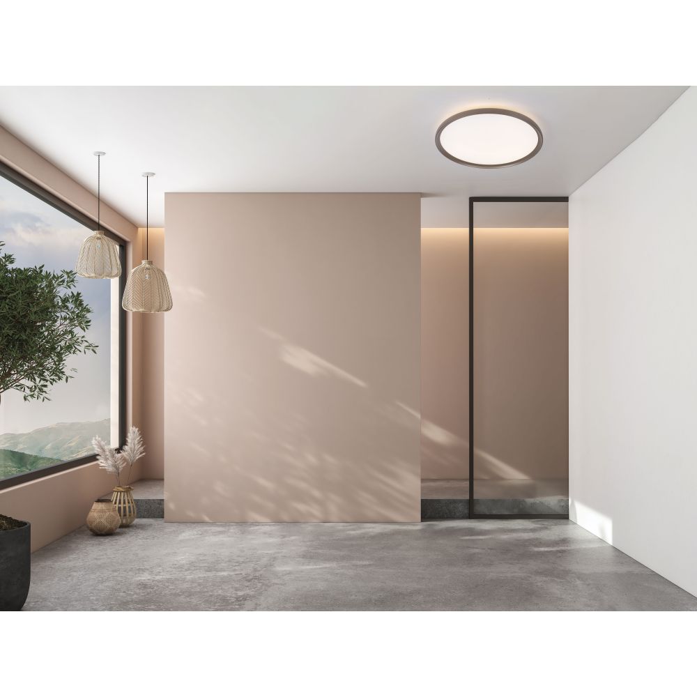 Dotata di LED integrati da 55W, offre un flusso luminoso di 3330–3700 lumen, sufficiente a illuminare con efficacia salotti, cucine spaziose, sale riunioni e uffici. La luce diffusa e omogenea riduce le zone d’ombra.
