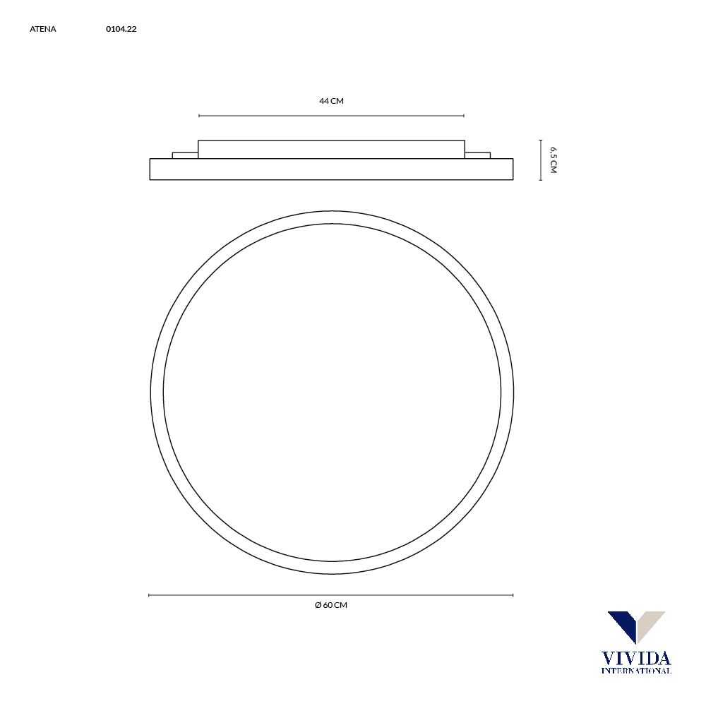 Plafoniera LED Vivida Atena 60 cm – 55W, 3330–3700 lumen. Design elegante, profilo sottile, luce diffusa e uniforme. Colore luce selezionabile con switch interno tra 3000K/4000K. Perfetta per salotti e cucine ampie. Garanzia 2 anni.