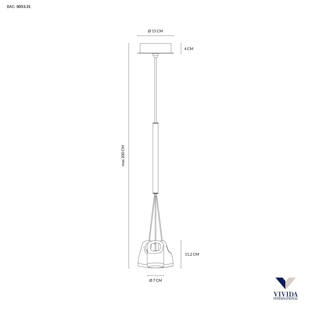Dimensioni: Ø 15 cm – Altezza 200 cm (cavo incluso).