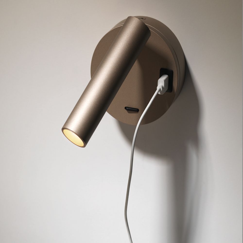 Vivida Betu faretto orientabile per letture con interruttore e presa USB