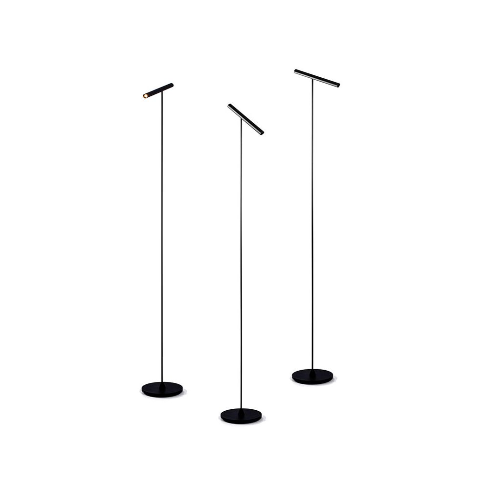 Lampada da terra da lettura moderna e orientabile realizzata in metallo, dotata di dimmer, LED 9W 3000K, finitura nera.