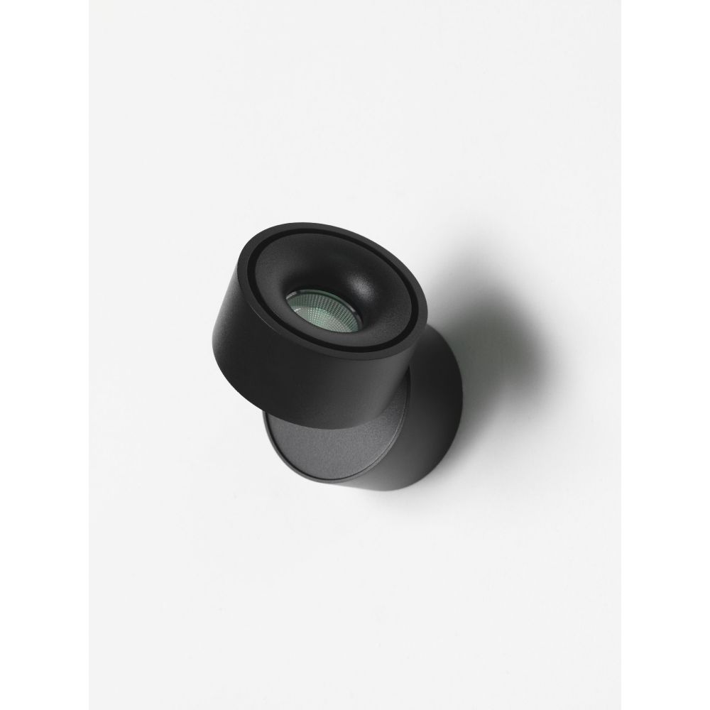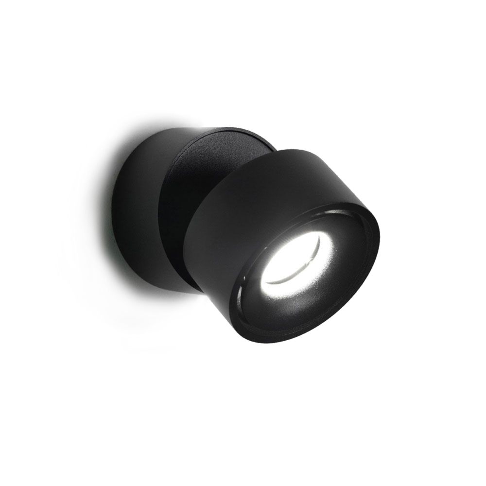 Faretto orientabile per parete o soffitto in metallo, LED 11W 3000K, disponibile in colore bianco o nero.
