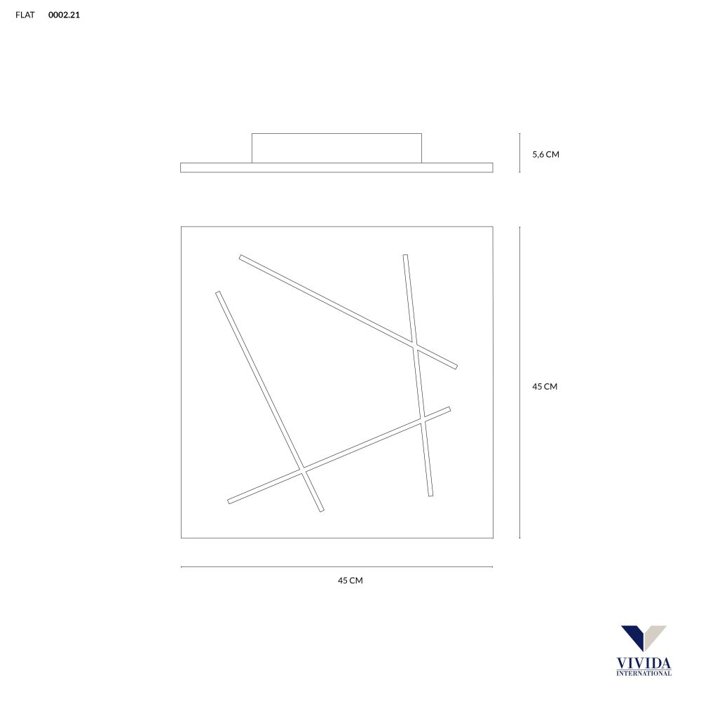 Con il modello Flat 45, Vivida propone una soluzione di illuminazione dal forte impatto estetico. Dotata di LED integrati da 42W, garantisce un’illuminazione diffusa con un flusso di 1630 lumen, valorizzando ogni ambiente con linee luminose moderne.