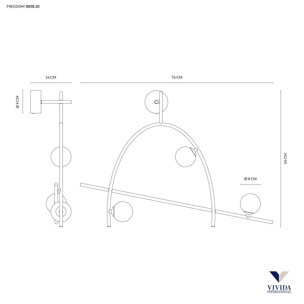 L’applique Freedom di Vivida rappresenta una soluzione luminosa elegante e contemporanea, ideale per chi cerca un elemento decorativo di forte personalità. La struttura in acciaio e vetro, caratterizzata da archi e linee geometriche, sostiene tre sfere luminose che creano un affascinante equilibrio visivo.