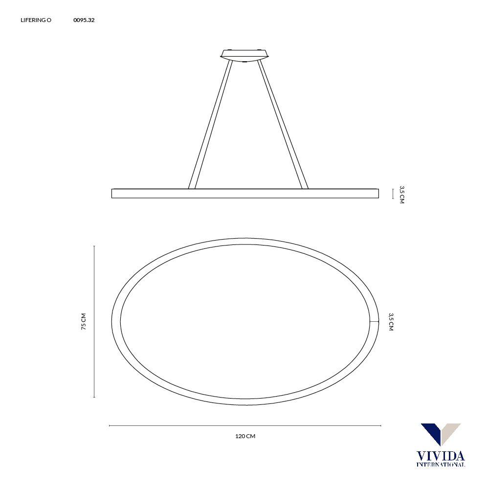 La sospensione ovale Lifering 120 cm di Vivida è una soluzione d’illuminazione dal design moderno ed elegante, ideale per soggiorni, sale da pranzo e ambienti contract di ampie dimensioni.